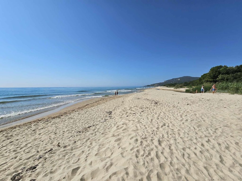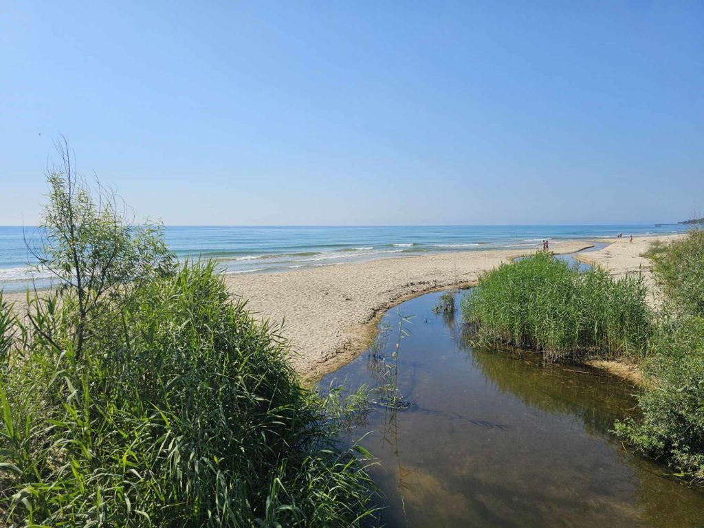 Vorne heraus zieht sich der 6,5 kilometerlange weisse Sandstrand entlang mit flach abfallendem Wasser und schon fast karibikfeeling. Auch hier sticht sofort die Größe hervor, sodass es hier nie wirklich überfüllt wirkt. Doch was Albena so aussergewöhnlich und stark macht, ist das große Naturschutzgebiet auf der gegenüberliegenden Seite welches seinesgleichen sucht.