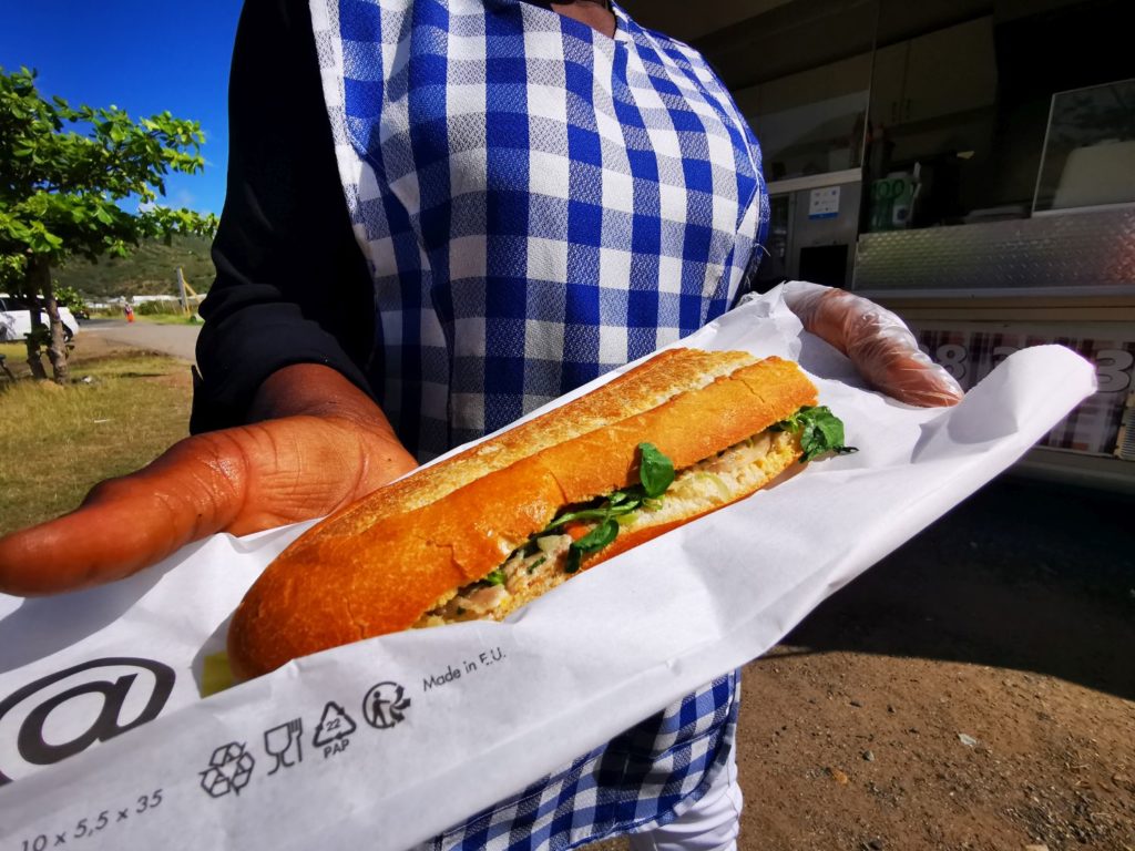 Frühmorgens auf St. Martin…Was tun wenn der Hunger bereits drückt? Wir haben den ultimativen Food-Tip im Bereich Grand Case. Hier hat Mimose ihren Foodtruck und macht die wohl bekanntesten Frühstückssandwiches auf St. Martin. Es gibt die scharfe Variante oder die weniger scharfe. Karibisch-würzig sind sie alle und Mimose macht sie mit besonders viel Liebe, denn sie hat ihre Stammgäste, die fast täglich zum Frühstück oder Mittagessen kommen.