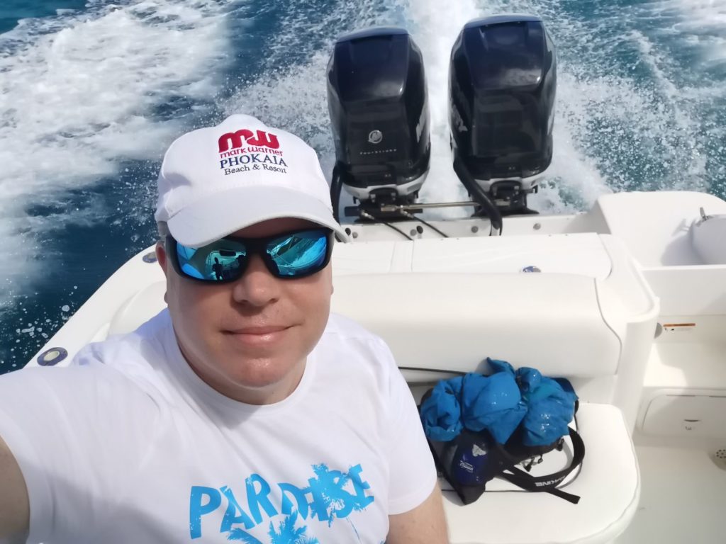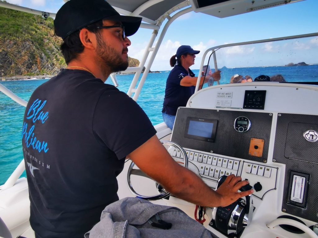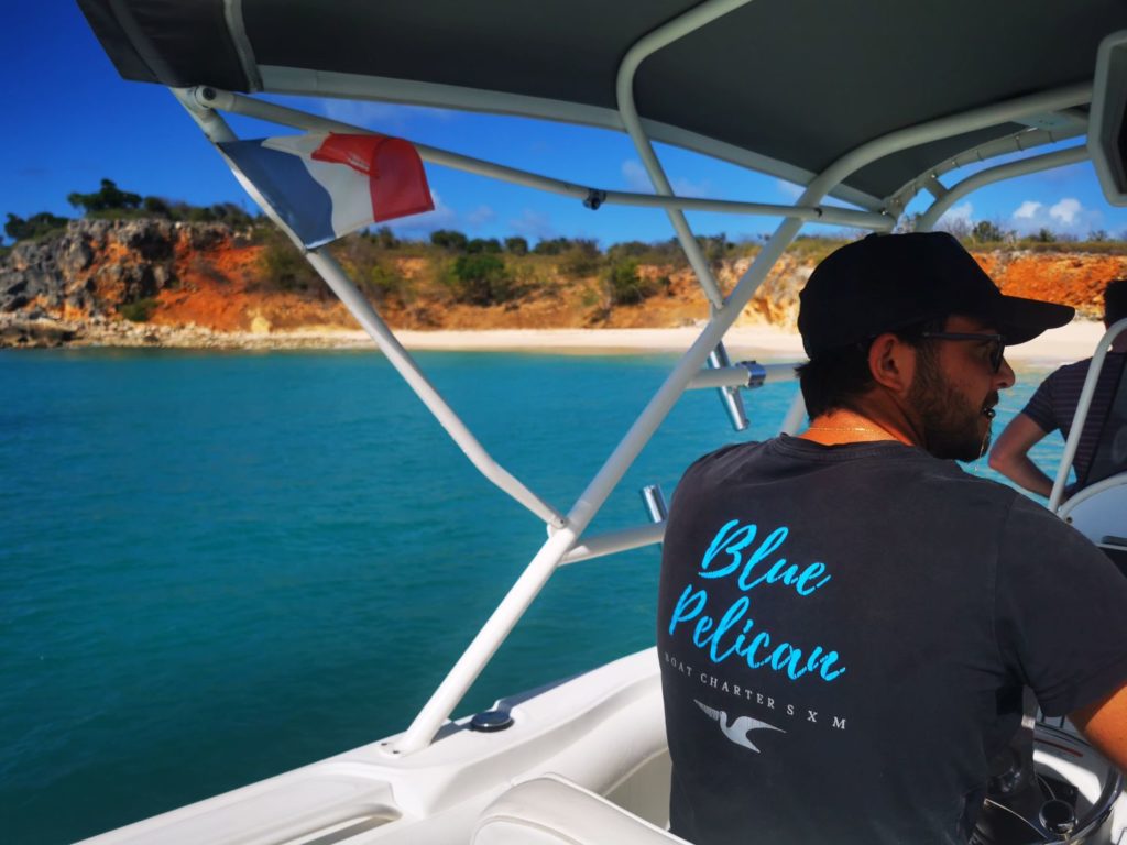 Seine Bootsfirma Blue Pelican steht für jede Menge Spaß, Abenteuer und Info auf dem Wasser. Der junge Kapitän mit jeder Menge Erfahrung kennt die Gewässer rund um St. Martin von klein auf.