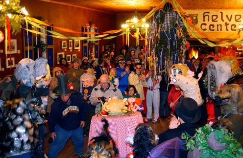 Die Fastnachtsbräuche haben ihren Ursprung in einem Gemisch aus christlichen Riten, altüberliefertem Brauchtum und heidnischen Feiern. In Helvetia wird der Brauch mit einer lebhaften Party begangen, während der die Teilnehmer mit furchterregenden Masken und bunten Kostümen durch die Straßen schlendern. Die ausgelassene Stimmung wird durch Musik und Square Dance begleitet. Das Fest endet mit einem Laternengang zu einem Lagerfeuer, in dem „Old Man Winter“ verbrannt wird – Freund Frühling kann kommen!