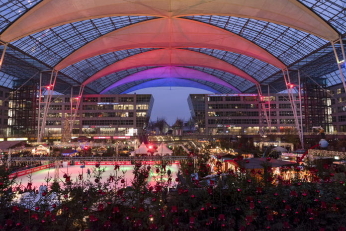 Er ist in der Vorweihnachtszeit ein Besuchermagnet für die Flughafenregion aber auch für Fans aus der ganzen Welt: Die Rede ist vom Weihnachts- und Wintermarkt am Münchner Airport, der in diesem Jahr sein 20-jähriges Jubiläum feiert. Vom 17. November bis zum 26. Dezember 2018 dreht sich im München Airport Center täglich von 11.00 bis 21.00 Uhr wieder alles um Kunsthandwerk, Spielwaren oder süße und pikante Köstlichkeiten. 44 Marktbuden laden zum Probieren, Flanieren, Stöbern und Geschenkekaufen ein. Traditionelles Highlight bzw. zentraler Anziehungspunkt des Marktes ist die 600 Quadratmeter große Eisfläche: Wer hier ein Tänzchen wagen oder seine Klasse beim Eisstockschießen unter Beweis stellen will, ist auf dem Weihnachts- und Wintermarkt goldrichtig. Schlittschuhe können gegen Gebühr vor Ort geliehen werden. Kulinarisch ist für jeden Geschmack etwas dabei: Von der Bratwurst, über Lebkuchen, Punsch und Feuerzangenbowle bis hin zu neuen Kreationen wie heißen Caipirinha, Barbarenspießen, Rahmfleckerl oder Bio-Mandelgebäck.
