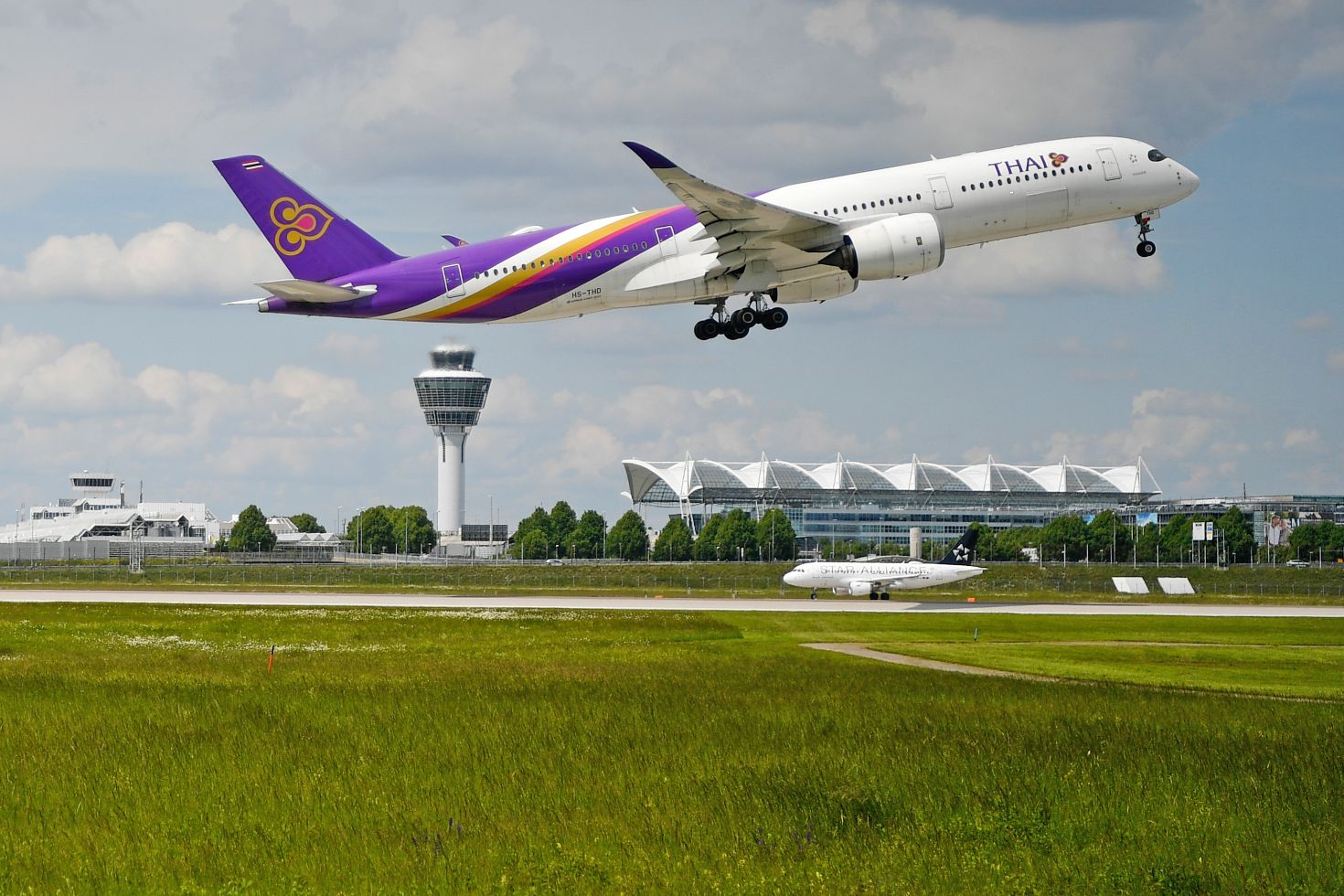Die aus Bangkok kommende Boeing 747 landete damals noch auf dem Flughafen München-Riem. Nach einer vierjährigen Pause nahm die Airline die Flüge am 17. Dezember 1996 vom „neuen“ Flughafen im Nordosten Münchens wieder auf, zunächst mit McDonnell-Douglas-DC-10-Maschinen und mit Zwischenlandung in beiden Richtungen am Atatürk-Flughafen in Istanbul.
