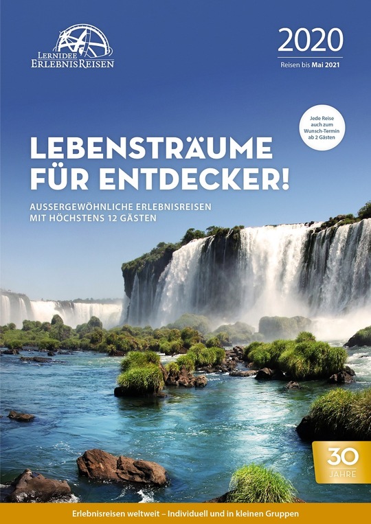 Ganz nach dem Motto „aller guten Dinge sind drei“ komplettiert der neue Katalog Lebensträume für Entdecker! 2020 das Portfolio von Lernidee Erlebnisreisen. Neben dem umfangreichen Programm für besondere Zugreisen und dem Katalog für Schiffsreisen abseits der üblichen Routen präsentiert Lernidee hier auf 188 Seiten sein Angebot für außergewöhnliche Erlebnisreisen weltweit, das sich aus Reisen für Kleingruppen mit maximal 12 Gästen und Privatreisen zum Wunsch-Termin zusammensetzt und für 2020 um 17 neue Reisen ausgebaut wurde. Die 73 Reisen auf allen Kontinenten beinhalten neben Besuchen von großen Sehenswürdigkeiten, der Übernachtung in charmanten, kleinen Hotels und Unterkünften auch lokale Kulinarik-Erlebnisse, authentische persönliche Begegnungen und die Entdeckung geheimer Juwele. Zur Planungssicherheit gibt es für die meisten Kleingruppenreisen jeweils Garantie-Termine ohne Mindestteilnehmerzahl.
