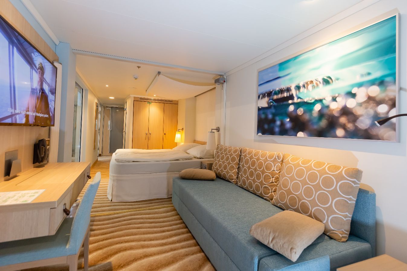 Ein besonderes Highlight am AIDA Messestand ist die Showkabine des neuen Schiffs AIDAnova, die erstmals auf einer Messe zum Einsatz kommt. Beim Besuch der originalgetreuen Verandakabine Deluxe mit Lounge und Badezimmer werfen die Besucher einen ersten Blick in ihr neues Zuhause auf See und genießen das AIDA Urlaubsfeeling.