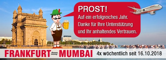 Neben der bestehenden täglichen Direktverbindung Frankfurt – Delhi, eröffnet die Direktverbindung Frankfurt – Mumbai, das Tor zu Süd Indien. Die neue Verbindung zur Finanzmetropole Mumbai vereinfacht zusätzlich die Anbindung an die IT Metropolen Chennai, Bangalore und Hyderabad und die beliebte Nord Indien Route Udaipur, Chandigarh und Amritsar. So kommen nicht nur Urlaubsreisende an ihr bevorzugtes Ziel, auch Geschäftsreisenden wird die Pflege von Beziehungen zwischen Deutschland und Indien erleichtert.