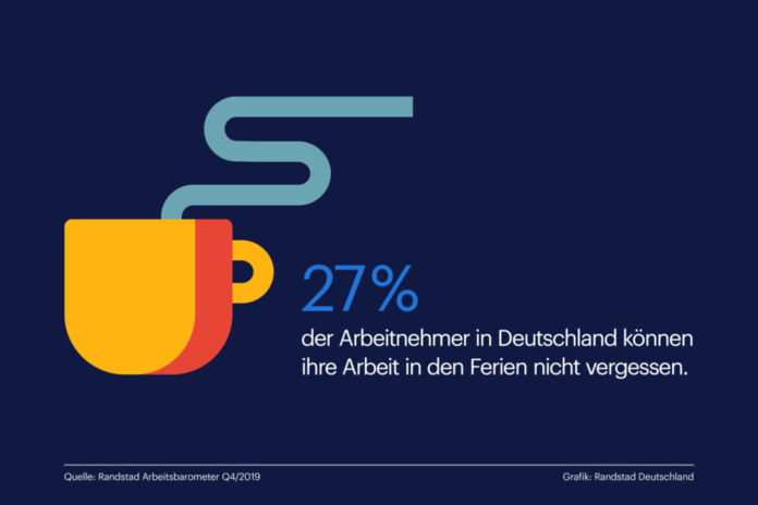 Im Urlaub wollen viele den Arbeitsalltag vergessen. Ohne Erfolg: Über ein Viertel der Arbeitnehmer in Deutschland berichtet im aktuellen Randstad Arbeitsbarometer, dass sie in Erholungsphasen die Arbeit nicht aus dem Kopf bekommen.