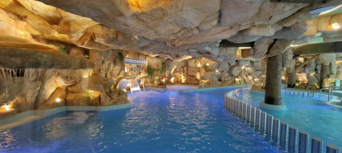 Die Indoor Aquashow ist die erste überdachte derartige Anlage auf der Iberischen Halbinsel – und hat einiges zu bieten: Prunkstück sind die fünf rasanten Rutschen, die auf einem 26 Meter hohen Turm starten. Besonders spektakulär ist die Tornado – Rutsche, auf der die Besucher Musik und Lichteffekte erleben und in einem großen Kreisel von 16 Metern fast ein Gefühl von Schwerelosigkeit erreichen. Daneben gibt es weitere Rutschen – auf manchen saust man auf Matten in Richtung Wasserbecken, auf anderen einfach auf dem eigenen Körper. Apropos Wasserbecken: zur Wahl stehen Becken für Babys und Kinder, verschiedene Erlebnisbecken, Wasserfälle, Wasserkanonen und ein Wellenbad – und das alles bei einer wohligen Raumtemperatur von rund 32 Grad.