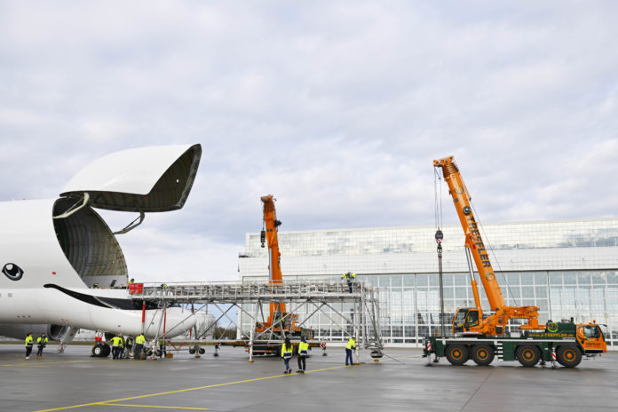 In den ersten fünf Wochen dieses Jahres ist der Riesen-Frachter mit dem Namen „Beluga“ immer wieder zu Gast auf dem Flughafen München. Als Grundlage für den BelugaXL dient der Airbus A330-200F. Er verdankt seinen Namen dem Walfisch-ähnlichen Aussehen. Der Beluga transportiert überwiegend Flugzeugkomponenten zwischen den verschiedenen Airbusstandorten. Bei seinen jetzigen Gastspielen am Münchner Airport werden in Augsburg hergestellte A350-Rumpfsektionen – sogenannte „side shells“ – über ein eigens konstruiertes Spezialgerüst in das Transportflugzeug verladen und dann in das Airbuswerk nach Hamburg-Finkenwerder geflogen.