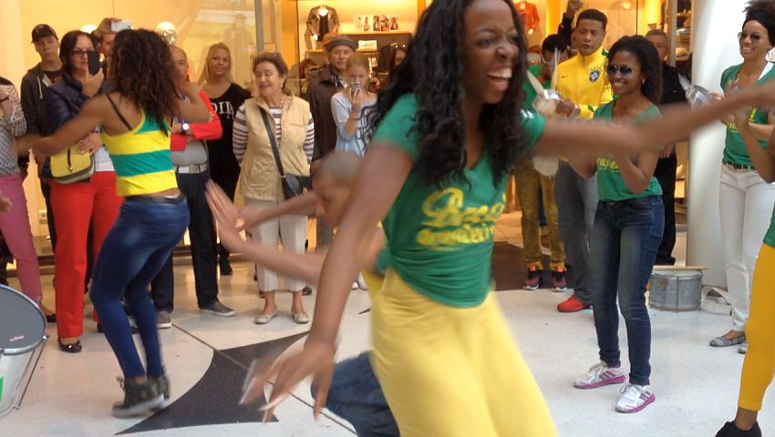 Im Frankfurter Multi-Marken-Center MyZeil gab es heute Mittag eine Überraschung für Besucher und Geschäfte. Denn plötzlich tauchten zahlreiche Brasilianische Tänzer und Tänzerinnen sowie Musiker auf und versammelten sich zu einem ziemlich lauten und bunten Flashmob. Den Besuchern gefiel es und kurzerhand schwappte das brasilianische Fieber über…Nach einigen Minuten war alles wieder vorbei. Grund des Flashmobs: Die Samba-Show „Brasil Brasileiro“ macht derzeit Stop in der Frankfurter Alten Oper.