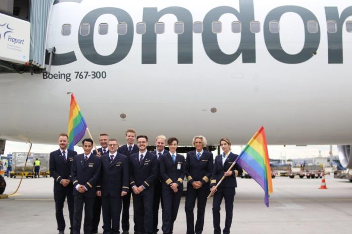 Regenbogen-Condor: Deutschlands beliebtester Ferienflieger lässt auf dem heutigen Flug von Frankfurt nach New Orleans eine weibliche Cockpit- und männliche Gay Cabin-Crew mit Uniform-Accessoires in Regenbogenfarben abheben. Mit einem eigenen Condor Float wird die Pride Crew vor Ort außerdem an der berühmten Pride Parade in New Orleans teilnehmen. Condor will damit ein starkes Zeichen für Vielfalt, Toleranz und Akzeptanz setzen. Der Pride Flight ist Teil mehrere Diversity-Aktivitäten der Thomas Cook Group Airline in Großbritannien und Deutschland in den kommenden Monaten.