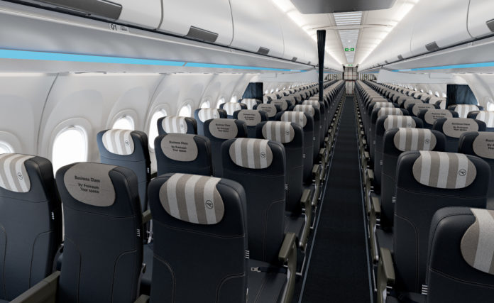 Die Kabine ist mit komfortablen Sitzen der Firma Recaro ausgestattet, die mehr Annehmlichkeiten und Komfort als bisher auf der Kurz- und Mittelstrecke bieten. In der Business Class erwartet Gäste der Recaro BL3710 mit mehr Sitzabstand, einer längeren Armlehne und der großzügig neigbaren Rückenlehne. Die Economy Class ist mit dem SL3710-Sitz der Firma Recaro ausgestattet. Neben der Halterung für das mobile Endgerät verfügen die Sitze in allen Klassen über separate Becherhalterungen sowie mehr Stauraum in den praktischen Sitztaschen.