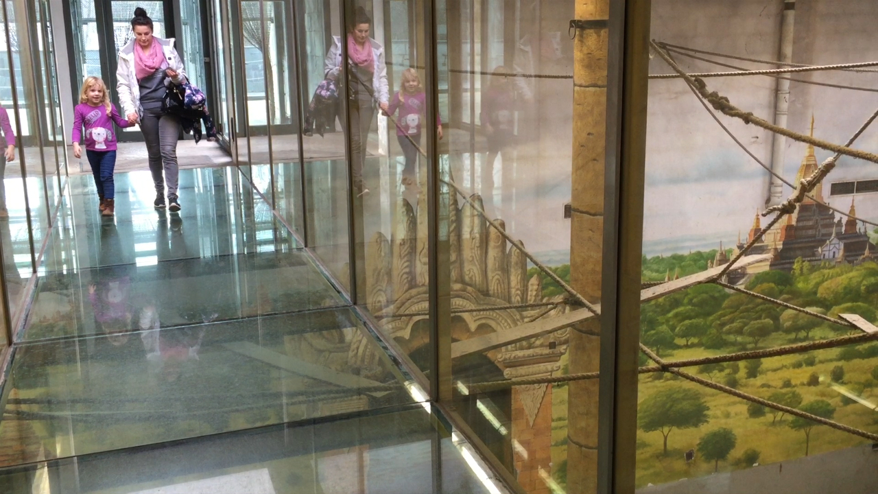 In einem ostungarischen Zoo gibt es ein Elefantenhaus mit viel Glas. Highlight ist die Glasbrücke über den Köpfen der Dickhäuter. Eine einmalige Angelegenheit und spektakuläre Einblicke in das Wohnzimmer der Elefanten. So macht Zoo richtig Spaß!