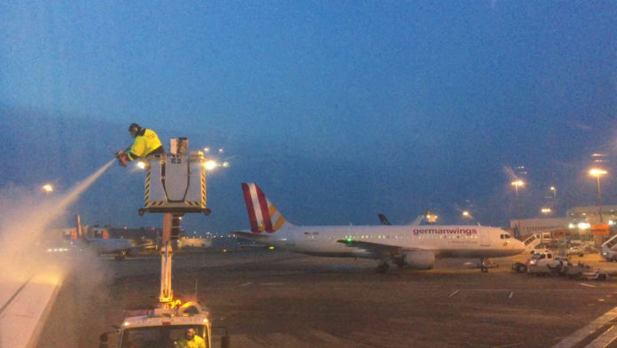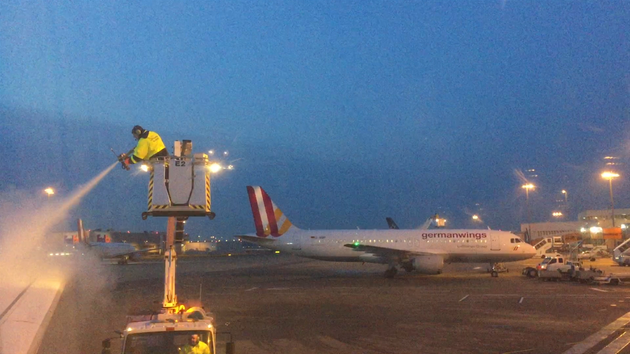 Im Winter kommt es immer wieder zu Verspätungen im Flugverkehr weil die Maschinen enteist werden müssen. Dies dient jedoch der Sicherheit und ist vor dem Abflug bei entsprechender Witterung vorgeschrieben. Hier wird ein Airbus auf dem Flughafen Köln-Bonn enteist.