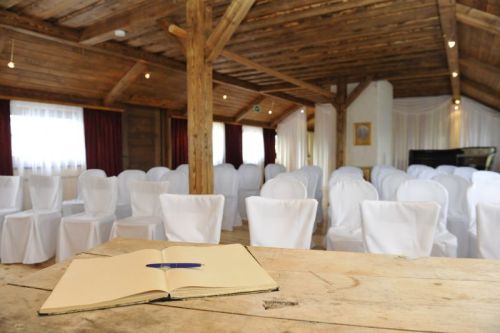 60 Personen können das Brautpaar in das neue Standesamt zu ihrem „Ja“ Wort begleiten und die Gamskogelhütte selbst bietet Platz für bis zu 300 Hochzeitsgäste, die bequem mit dem Auto bis direkt zur Hütte fahren können. Im Winter ist die nur mit Skiern oder Schneeschuhen zu erreichen. Nach der Zeremonie besteht für evangelische Brautpaare in der nur 70 Meter entfernten Marien Kapelle die Möglichkeit, auch den kirchlichen Segen zu erhalten, für katholische Liebende ist derzeit nur eine Segnung möglich. Aber eines erhalten alle Hochzeitspärchen von der Marien Kapelle, egal welcher Konfession sie angehören, nämlich ein tiefrotes Herz mit eingraviertem Namen und Hochzeitsdatum.