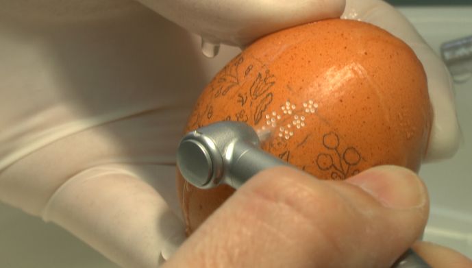 Wir haben den Zahnarzt noch vor Ostern besucht und ihm über die Schulter geschaut. Übrigens benötigt er für ein Osterei rund eine Woche Arbeit. nebenbei natürlich – denn hauptsächlich kümmert sich Stiller natürlich um seine Patienten in der Klinik. Die finden das übrigens ziemlich cool und haben größtes Vertrauen sich beim „Künstler“ in die zahnmedizinische Behandlung zu begeben, denn das er besonderes Fingerspitzengefühl hat, ist nun unübersehbar.