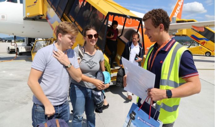 Heute, am 1. August 2019, landete der 1millionste Easyjet Passagier pünktlich um 14:10 mit Easyjet aus Berlin Schönefeld auf dem Flughafen Salzburg. Der Fluggast wurde vom Marketingteam des Flughafens mit einem Fluggutschein für zwei Personen und einigen kleinen Aufmerksamkeiten überrascht.