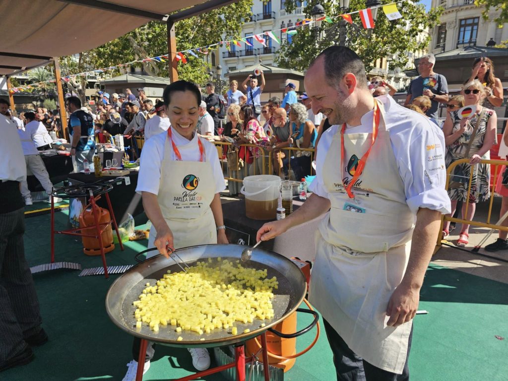 Valencia ist die drittgrößte Stadt Spaniens und gleichzeitig auch Region bzw. Provinz. Die bei Touristen beliebte Stadt hat viel zu bieten…neben den attraktiven Sightseeing Angeboten, viel Kultur und auch beeindruckende Natur drumherum, gilt Valencia auch als Mekka für Foodies…Die Gastronomiszene wird geprägt durch wundervolle Tapas Bars und natürlich durch die weltweit bekannte Paella…Valencia ist Hauptstadt der Paella und daher auch hervorragender Austragungsort des World Paella Day Cups, der Internationalen Meisterschaft bei der Köche aus der ganzen Welt antreten. Wer kocht die beste Paella der Welt? In dieser Woche brodelten die Paella Pfannen auf dem Hauptplatz vor dem historischen Rathaus und der Geruch von vielen leckeren Zutaten lag in der Luft. Mit dabei auch der deutsche Koch Mario Furlanello aus Frankfurt, der Deutschland auf dem World Cup vertreten hat.