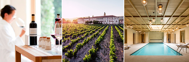 Neben dem „Spa Sommelier“ beeindruckt das mehr als 1.000 Quadratmeter große nachhaltige Santuario Wellness & Spa des Boutique-Hotels, ausgezeichnet in den Kategorien „Best New Spa & Wellness Property“ und „Best for Wow Factor“ (2016) des international renommierten Wellness Travel Awards, zudem mit seiner außergewöhnlichen Architektur. In den ehemaligen Pferdeställen der Abtei in einer Tiefe von neun Metern gelegen, verfügt es aufgrund großer eingelassener Patios und Fenster dennoch über natürliches Tageslicht. Absolute Zweisamkeit kann hier bei einer gemeinsamen Behandlung in der Spa-Suite genossen werden, die auch über eine eigene Sauna, ein Dampfbad und vieles mehr verfügt. Neben einem Innenpool mit Wasserfall können Sonnenanbeter in den Sommermonaten auch draußen am Außenpool, einer Oase zwischen den umliegenden Weinbergen, entspannen und die Köstlichkeiten der Poolbar genießen.
