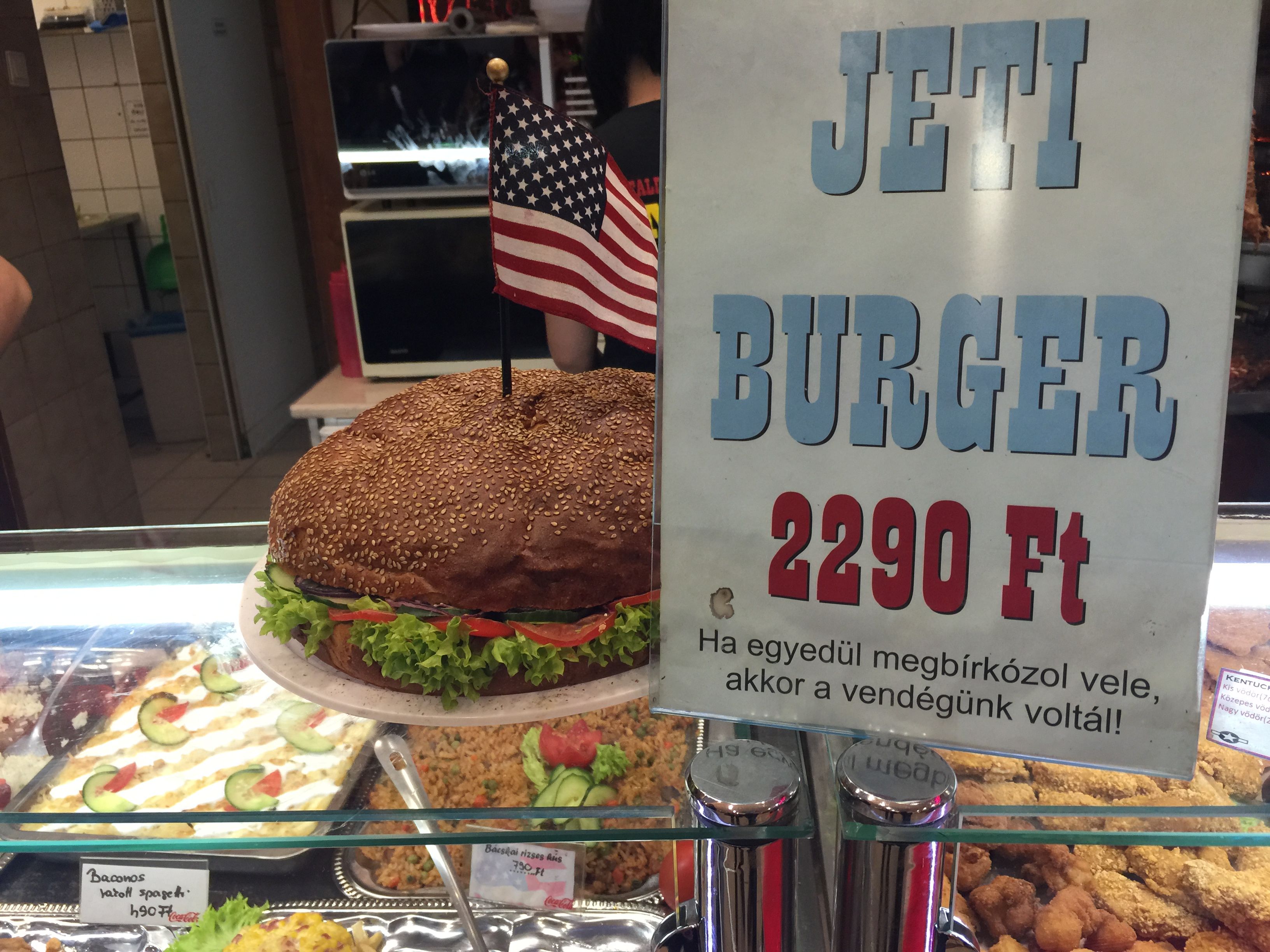 In Debrecen im Einkaufszentrum „Plaza“ gibt es ein amerikanisches Fastfood Restaurant welches den wohl größten Burger Ostungarns anbietet. Der „Monster-Burger“ namens Jeti ist mehrere Kilo schwer und kann kaum von einer Person gegessen werden. Schafft es einer, muß er nicht zahlen.
