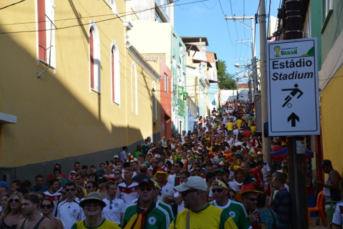 Ein richtiger Fan nimmt es gelassen. Die DFB-Fans sind auf der Halbinsel Itamaracá vor den Toren Recifes untergebracht.Hier gibt es das DFB-Fan-Resort. Zum ersten Spiel nach Salvador mussten die DFB-Fans dann eine 19-stündige Reise mit dem Bus absolvieren, bevor sie die deutsche Elf siegen sehen konnte. Doch die Fans nehmen es gelassen…Ausgelassen wurde die Rückfahrt mit Siegeshymnen vollzogen. Am Samstag dauert es dann nicht ganz solange. Zumindest gibt es für die Fans sehr komfortable Busse die eingesetzt werden…