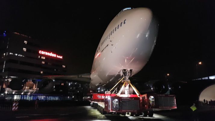 Es war wohl eines der spektakulärsten Transporte in Amsterdam. In den letzten beiden Nächten wurde eine Boeing 747 quer über die Autobahn A9 über Felder, Brücken bishin zum Zielort, dem Corendon Village Airport Hotel transportiert. Ein extrem spektakuläres und kostenintensives Projekt. Der Jumbo Jet wird nun nach den 12, 5 Kilometern einen Platz im Garten des Hotels finden und wird dort als Café, Bibliothek sowie kleines Museum ausgebaut. Amsterdam hat wohl nach diesem Spektakel eine Sehenswürdigkeit mehr!