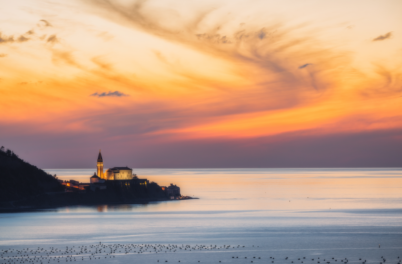 Der Weg, der um Piran herumführt, präsentiert die Stadt in einem ganz besonderen Licht. Die Wanderung beginnt in den Gärten von Portorož und führt weiter bis zum Weißen Kreuz. Bald öffnet sich der Blick bis nach Triest und bei gutem Wetter sogar bis zum Triglav. Über einen kurzen Abstieg gelangt man zu zwei Fiesa-Seen, bevor sich die Wanderung unter einer Klippe direkt am Meer fortsetzt. Der Blick auf den berühmten Umriss der Kirche St. Georg kennzeichnet die Ankunft in Piran. Durch enge Gassen geht es weiter zum nächsten Höhepunkt der Wanderung, dem romantischen Leuchtturm auf der Landzunge Punta. Entlang der Strandpromenade kehrt man schließlich nach Portorož zurück.