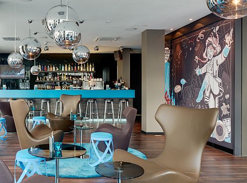 Inspiriert von Funkenmariechen und Dreigestirn dreht sich in der One Lounge des Hotels alles um den Kölner Karneval. Begrüßt wird der Gast vom Kölner Dom und von fröhlichen Sprüchen im Kölner Dialekt – die Übersetzung wird mitgeliefert. Das Thema Karneval wurde in Szene gesetzt von dem Comic-Künstler Christian Effenberger, der mehrere großformatige Illustrationen gestaltet hat. Wer in der Bar in einem der bequemen B&B Italia Sessel Platz nimmt, kann zudem charmante Trickfilmsequenzen quer durch Köln genießen. Ein weiteres Highlight ist die, passend zum Thema „Comic“, angefertigte exklusive „comic explosion“ von Lichtdesigner Ingo Maurer.