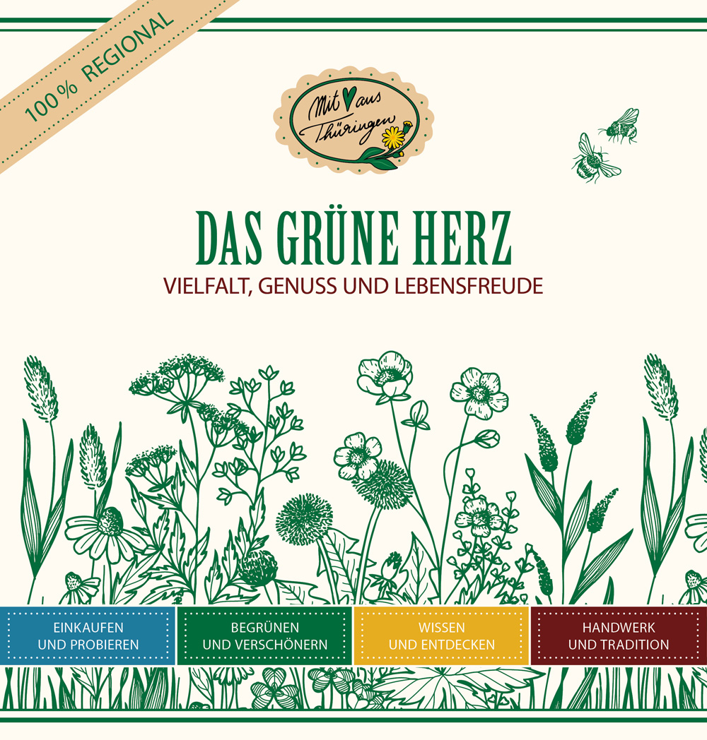 In den letzten Monaten erstellte die Saalfelder Feenrotten und Tourismus GmbH eine neue Broschüre unter dem Titel „Das Grüne Herz“. Mit diesem Produkt Heft schlägt sie zudem eine neue Richtung ein und bündelt fast 100 regionale Erzeuger in den Rubriken „Einkaufen und Probieren“, „Begrünen und Verschönern“, „Wissen und Entdecken“, „Handwerk und Tradition“ in einem kompakten, 68-seitigen Heft.