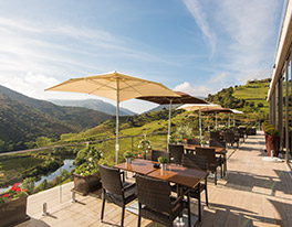 Das Abendessen nimmt man in dem modern gestalteten Restaurant oder auf der großzügigen Panoramaterrasse ein. Zu den ambitionierten und von regionalen Traditionen geprägten Köstlichkeiten, die Küchenchef Francisco Ferreira zubereitet, passen die feinen Tropfen aus der Nachbarschaft perfekt.