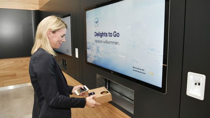 Lufthansa Group Statuskunden und Reisende der First oder Business Class können ihre Berechtigung mit der Bordkarte an einem Touchscreen bestätigen lassen und anschließend zwischen drei nachhaltig verpackten Menüvarianten zum Mitnehmen wählen. Benutzerfreundliche Touchscreens, eine barrierefreie Gestaltung, ein auf die Corporate Identity abgestimmtes Design und ein integriertes Recyclingsystem runden das neue innovative Markenerlebnis von Lufthansa ab. Das übergreifende Konzept wurde so gestaltet, dass es auch für den Non-Food-Bereich eingesetzt werden kann.