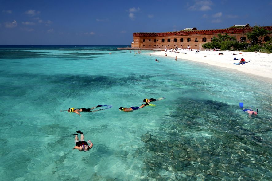 Im Dry Tortugas Nationalpark haben Besucher mehr als vier Stunden Zeit beim Schnorcheln bunte Korallen und tausende tropischer Fische zu bewundern, seltene Vögel zu beobachten und das geschichtsträchtige Fort Jefferson zu besichtigen. Das Fort diente früher sowohl als Festung als auch als Gefängnis. Die Geschichte des gigantischen Backsteinbauwerks wird Besuchern von einem professionellen Guide nähergebracht.