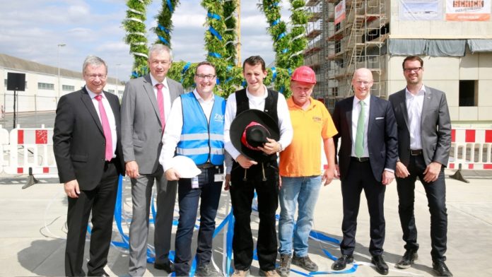 Der Rohbau steht: Am Montag feierte die Fraport AG Richtfest für das neue Gebäude des Winterdienstes am Flughafen Frankfurt. Der Neubau hat eine 10.000 Quadratmeter große Bruttogeschossfläche und vereint mehrere Funktionen: In der frostfreien Halle finden 50 Spezialfahrzeuge Platz. Angrenzend befindet sich ein Granulat-Lager für 200 Tonnen Bodenenteisungsmittel, ein vierstöckiges Bürogebäude, eine Werkstatthalle und Fahrzeugabstellflächen. Insgesamt können hier über 300 Winterdienstfahrzeuge untergebracht werden.