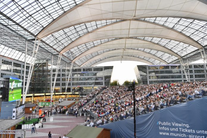 Die Spannung steigt, der Puls wird schneller: Nur noch eine Woche, dann beginnt die Fußball-Weltmeisterschaft in Russland – und damit verwandelt sich auch das MAC-Forum am Münchner Airport in eine Fußball-Arena. Auf einer 40 Quadratmeter großen LED-Wand werden vom 14. Juni bis zum 15. Juli alle Spiele live übertragen, Fans aus aller Welt können ihre Teams auf einer Tribüne mit 2.000 Plätzen anfeuern.