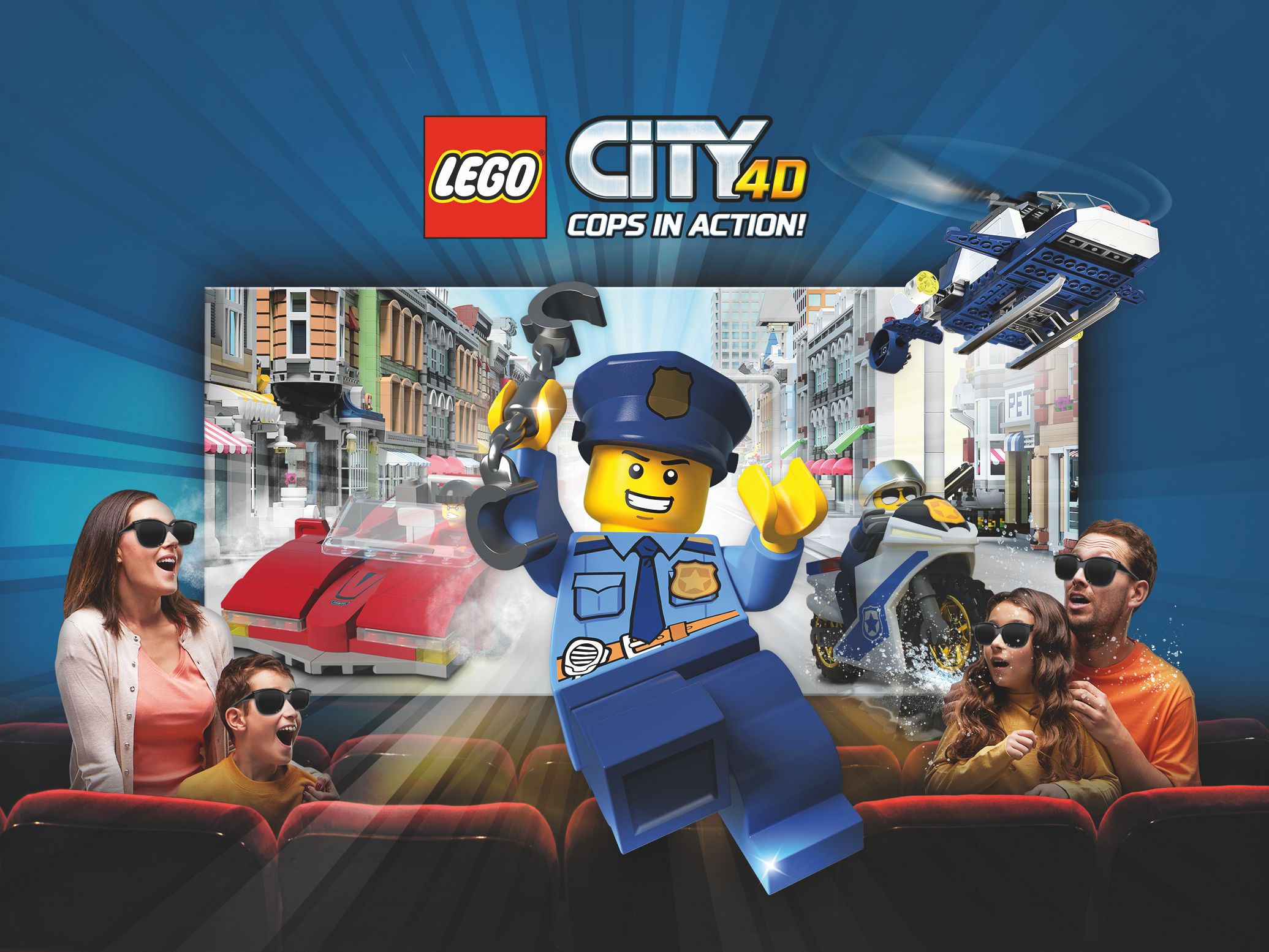 Turbulent und actionreich wird es ab dem 30. Mai in den LEGO Studios. Im Kino des Parks startet der neue 4D-Film „LEGO City 4D – Cops in Action“. Dabei nehmen die Helden der LEGO City Polizei die Zuschauer mit auf eine turbulente Jagd durch die Stadt, während echtes Wasser, Wind und Seifenblasen für 4D-Spaß sorgen.