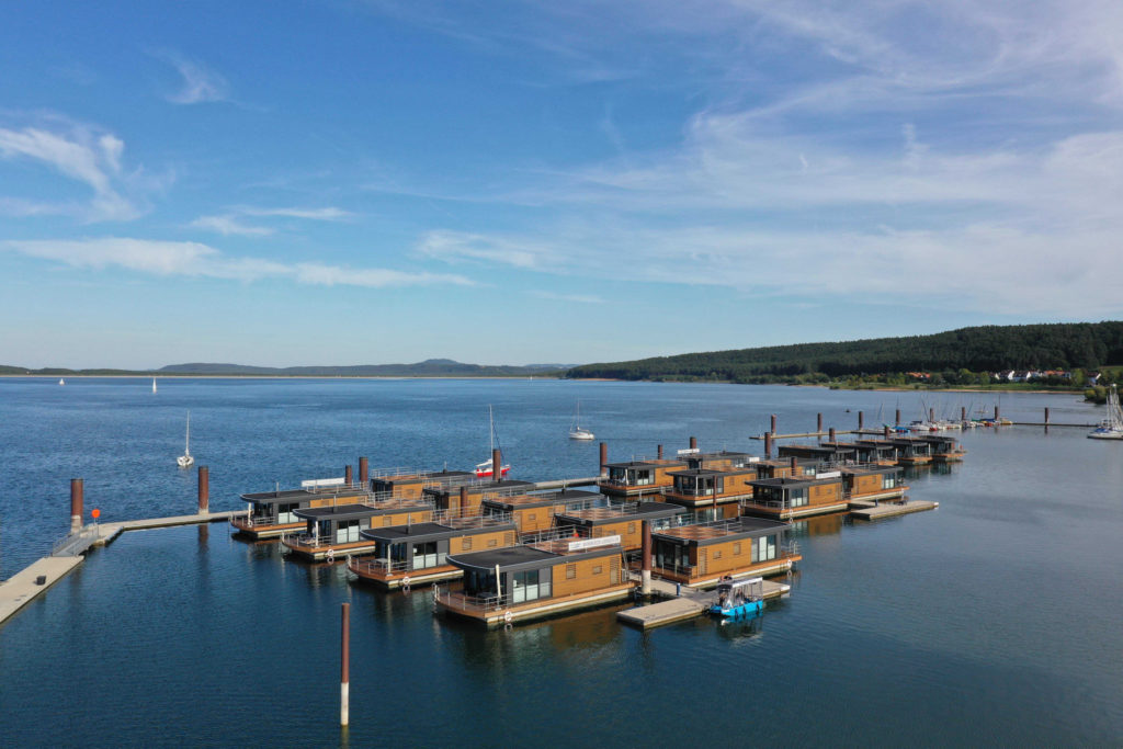 Gerade einmal 50 km von der Frankenmetropole Nürnberg und 150 km von München entfernt und damit geografisch perfekt im Städtedreieck Nürnberg, Stuttgart und München gelegen, schwimmen die 19 Premium-Ferienhäuser auf dem beliebten Brombachsee, mit jeweils 67 qm perfekt durchdachter Wohnfläche und großer Wasser- und Panoramaterrasse auf dem Dach. Anders als klassische Hausboote sind die Wasservillen fest an einem Schwimmsteg installiert und bilden zusammen eine Art Urlaubsdorf mit allem, was das Herz begehrt, in unmittelbarer Nähe und mit besonderem Community-Gedanken.