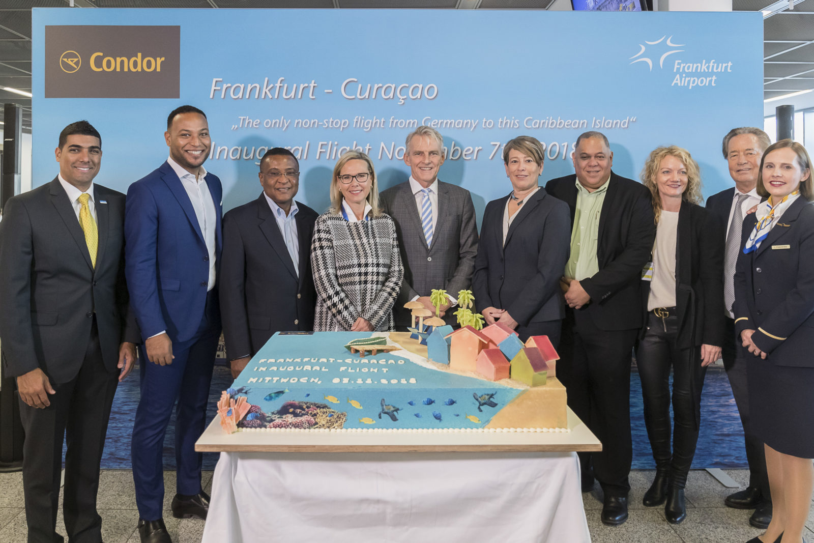 Am Gate des Erstflugs wurde die Verbindung gemeinsam mit Anke Giesen, Vorstand Operations, Fraport AG, und Paul Pennicook, Managing Director & CEO des Curaҫao Tourist Board, sowie über 200 Gästen gefeiert.