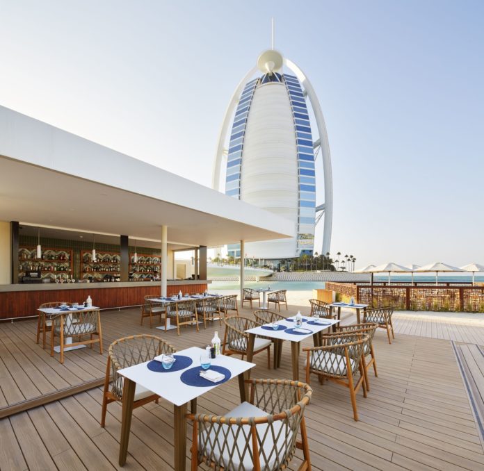 Onda by Pierchic heißt die neue Open-Air-Terrasse, die auf schwimmenden Gondeln entlang des privaten Piers direkt am Wasser liegt und den Blick freigibt auf den Arabischen Golfs und das Burj Al Arab Jumeirah.