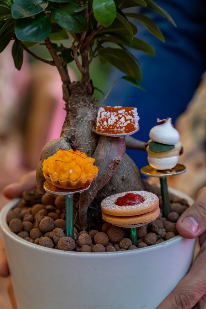 Die Gäste werden mit dem erdigen Aroma frischer Kräuter aus Arcadias hauseigener Hydrokultur-Farm begrüßt sowie mit duftenden Gewürzen, die aus der Region bezogen werden. Chefkoch Pravish Shetty stimmt die Gäste auf den Abend ein, indem er die Herkunft dieser sorgfältig ausgewählten Zutaten und die kulinarischen Traditionen, die sie ehren, erläutert und so eine ansprechende Einführung in das kulinarische Erlebnis schafft.
