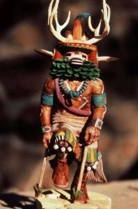 Ein Kachina ist ein maskierter Geist der Natur oder ein Vorfahre der Hopis. Kachinas sollen als Vermittler zwischen den Göttern und den Menschen wirken und den lebensnotwendigen Regen zur Erde bringen. Die Hopi sind bekannt für ihre kunstvoll geschnitzten Figuren.