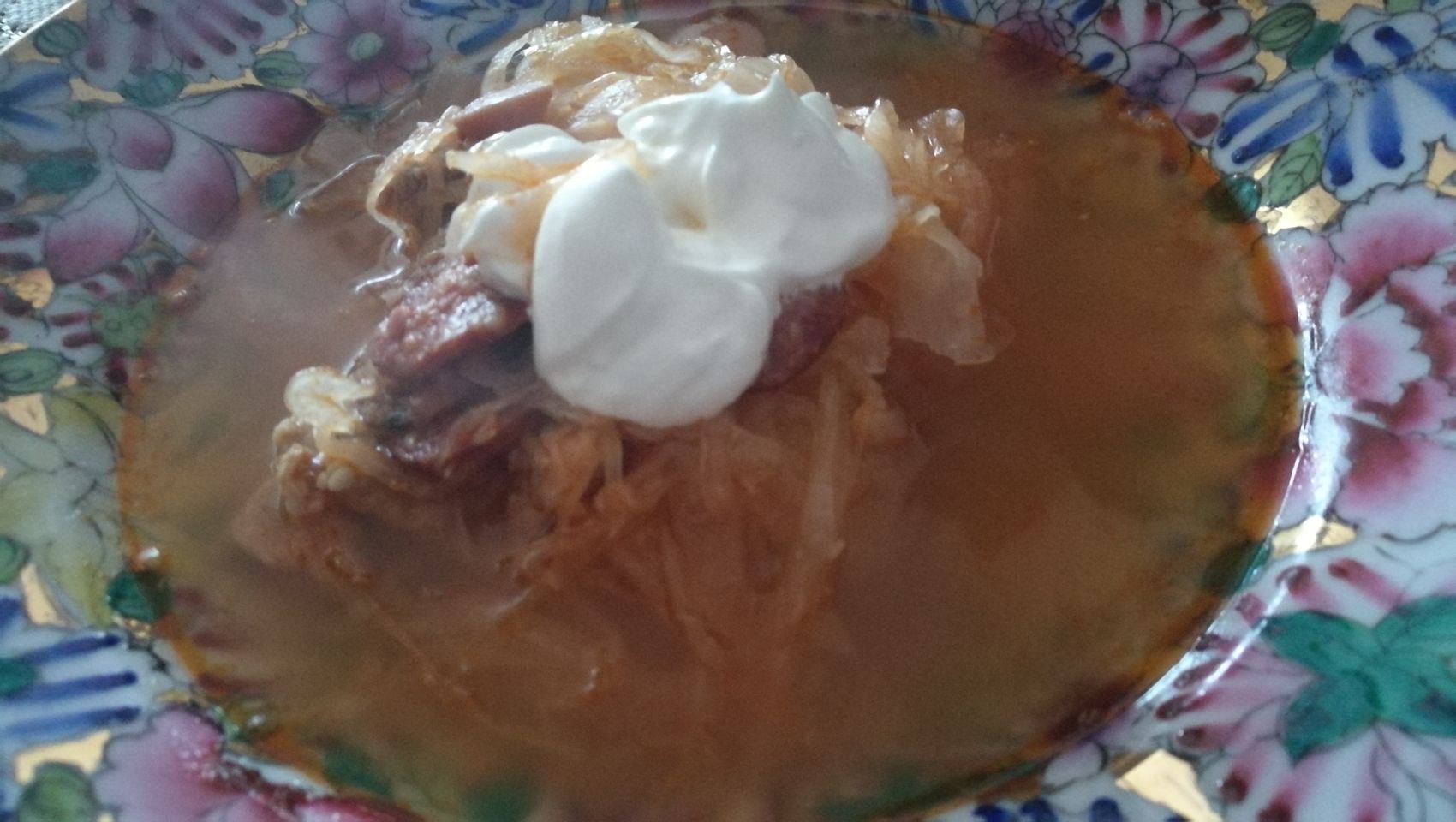 Sehr schmackhaft und in Ungarn isst man es sehr oft. Die gute Krautsuppe mit Kolbász und einem Schlag Rahm obendrauf. Wir würden es wohl Sauerkrautsuppe nennen in Deutschland. Doch die gute Wurst darin bringt etwas Schärfe mit und den guten rustikalen Geschmack. Einfach lecker!