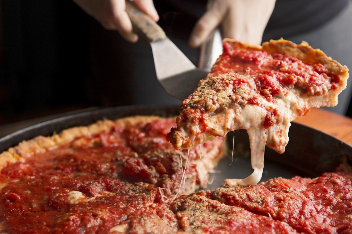 Die Deep Dish Pizza ist die Chicago-Variante der klassischen Pizza. Sie geht auf den Einfluss neapolitanischer Immigranten zurück und wurde erstmals 1943 in der Pizzeria Uno serviert. Bei dieser Spezialität bildet der Boden eine Schale mit hohem Rand, die dann mit Käse, Gemüse, Wurst und zum Abschluss mit Tomatensoße gefüllt wird. Diese umgekehrte Reihenfolge verhindert, dass der Käse während der einstündigen Backzeit verbrennt. Häufig wird zudem der dicke Rand extra mit Käse gefüllt. Noch weiter geht die Stuffed Deep Dish Pizza: Bei ihr liegt eine zweite Teigschicht über der ersten Füllung, die erneut mit Soße bedeckt wird. Sie ist zum Beispiel bei Gino’s East oder bei Giordano’s zu bekommen. Daneben gibt es noch die Thin-Crust Pizza, die sich mit einem dünnen, knusprigen Boden präsentiert. Diese wird zum Verzehr in Viertel geschnitten und kann neben der klassischen Deep Dish Pizza unter anderem im Pizza-Paradies Lou Malnati’s bestellt werden. Zudem hat sich die Pan Pizza etabliert. Sie wird in einer Pfanne zubereitet, und ihr Belag überrascht beispielsweise bei Pequod’s Pizzamit einer knusprigen Kruste. Wer mehrere Varianten der Pizzakreationen in Chicago kosten möchte, kann an einer geführten Pizza-Tour durch die Stadt teilnehmen, etwa von Chicago Pizza Tour. Dabeiwerden verschiedene Pizzabäcker besucht, um deren Kreationen zu probieren und um beim Blick hinter die Kulissen das eine oder andere Küchengeheimnis zu entdecken.