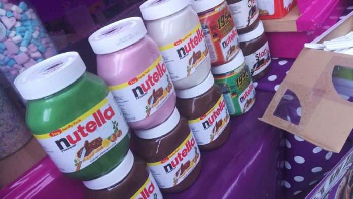 Nicht schlecht, was wir in London auf einem Foodmarkt angetroffen haben. Eine bunte Auswahl an Nutella Gläsern. Von grün über pink nach blau bishin zur original Schokofarbe. Doch was verbirgt sich hinter dieser very british kulinarischen Köstlichkeit? Bei näherem Hinsehen und auch schmecken, war klar, daß dies lediglich gefärbt ist und der geschmack nach wie vor schokoladig ist. Also alles nur ein Farbgag!? Crazy london!