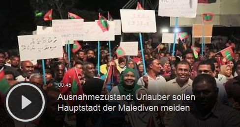 Die politische Krise auf den Malediven spitzt sich weiter zu. Präsident Abdulla Yameen hat nach tagelangen Unruhen den Ausnahmezustand verhängt. Hintergrund ist ein Urteil des Obersten Gerichtshofs, das die Freilassung mehrerer vorsieht. Die Regierung weigerte sich bislang, das Urteil umzusetzen. Zuletzt verhaftete die Polizei den früheren Präsidenten Abdul Gayoom. Der 80-Jährige hatte die Opposition unterstützt, die Präsident Abdulla Yameen zunehmend unter Druck gesetzt hatte. Der Ausnahmezustand erlaubt es der Polizei und den Sicherheitskräften, strenger gegen Oppositionelle vorzugehen.