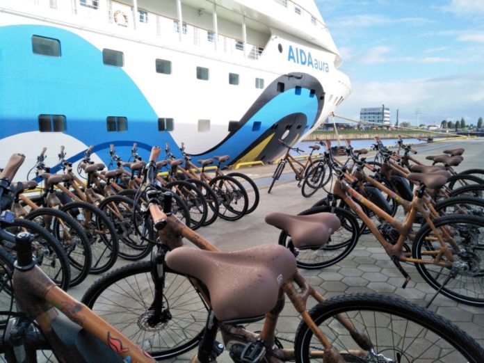 auf der 3. AIDA Weltreise reisen 70 ganz besondere Fahrräder der Marke my Boo an Bord von AIDAaura mit. Das Besondere an ihnen ist das außergewöhnliche Material, aus denen der Rahmen gefertigt ist. Bambus ist ein großartiger nachwachsender Rohstoff, der stabil wie Stahl und leicht wie Aluminium ist. Durch die federnden Eigenschaften sorgt er für ein besonders angenehmes Fahrgefühl für die AIDA Gäste. Zur Auswahl stehen neben der klassischen Mountainbike-Version auch Pedelecs, die mit einem elektrischen Hilfsmotor versehen sind.