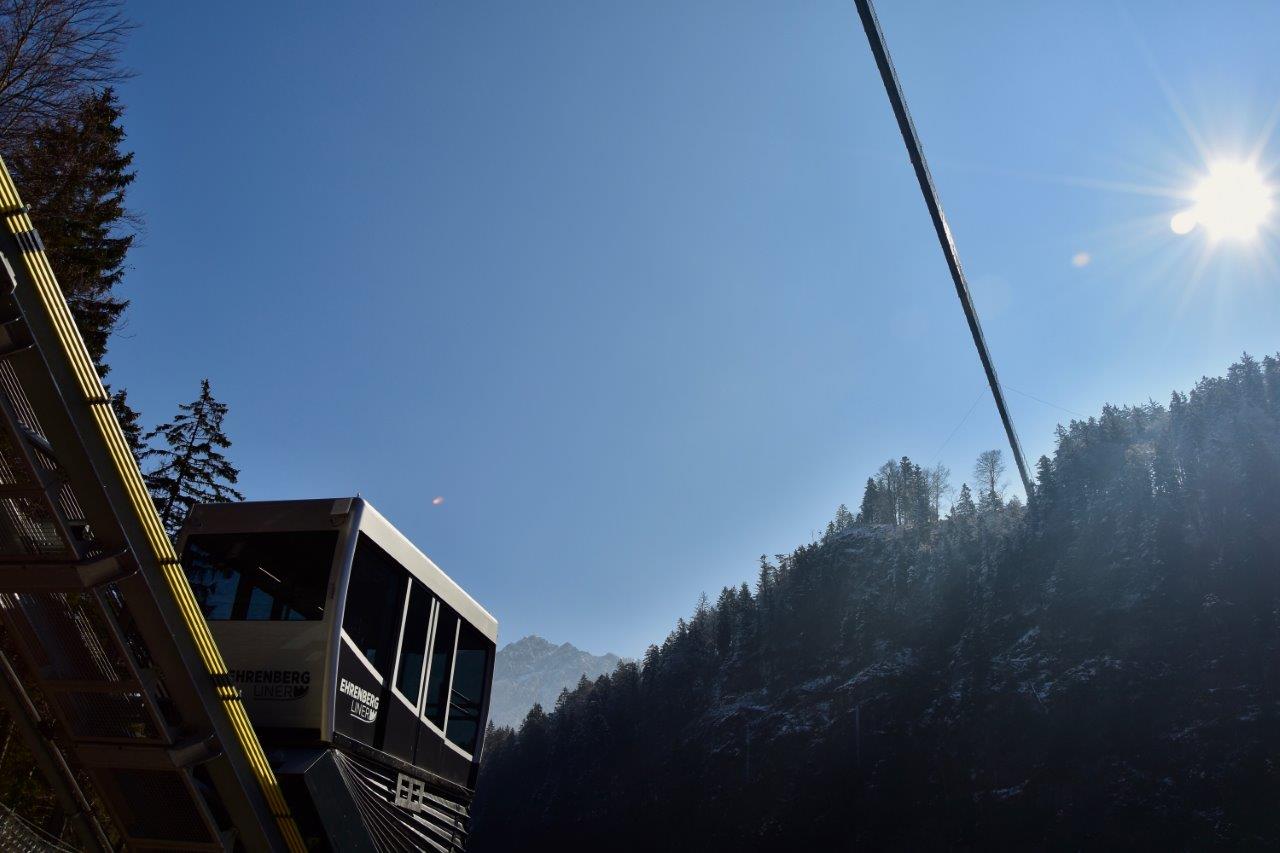 Post-Lermoos-Eigentümer Franz Dengg, der federführend am Bau des neuen Transportmittels mitgewirkt hat, und die Burgenwelt Ehrenberg ermöglichen mit dem Schrägaufzug „Ehrenberg Liner“ nun einen barrierefreien Zugang zur imposanten Hängebrücke. Auf einer Länge von 267 Metern werden pro Fahrt bis zu 50 Personen in lediglich zweieinhalb Minuten stattliche 110 Meter nach oben bzw. unten befördert.