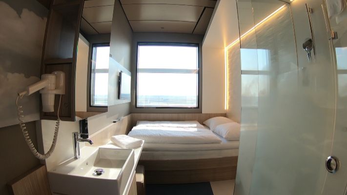 Das My Cloud Hotel am Frankfurter Flughafen bietet das etwas andere Übernachtungserlebnis. Das Hotel liegt im Transitbereich des Airports und man benötigt einen Non-Schengen-Flug um hier Hotelgast sein zu können. es ist das erste Hotel dieser Art in Deutschland und seit einem Jahr in Betrieb. Die Hoteldirektorin zeigt uns die Besonderheiten und Vorzüge für Fluggäste. Der besondere Kick: Es gibt auch Zimmer mit direktem Blick auf das Vorfeld des Flughafens.