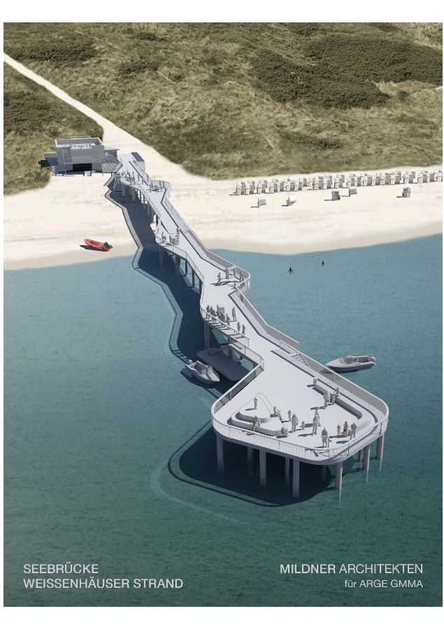 Die bisherige Seebrücke aus Holz wurde in den letzten Jahrzehnten mehrere Male erneuert. Im Winter 1978/79 musste die Brücke durch die Schneekatastrophe mit 200.000 DM renoviert werden. Auf einer Länge von über 30 Metern wurde damals die Beplankung völlig zerstört, außerdem wurden zahlreiche, im Meeresboden verankerte Pfosten verschoben oder ganz herausgerissen. Bereits fünf Jahre später gab es neue Schäden durch große Kälte, damals beteiligte sich der Ferien- und Freizeitpark Weissenhäuser Strand mit 24.000 DM an der notwendigen Sanierung. Im Jahr 2003 wurde die Brücke komplett umgestaltet – ursprünglich reichte sie nur bis zum Strandufer, nun wurde die DLRG-Station in die Brücke integriert und die Brücke aus Hochwasserschutzgründen deutlich erhört. Seitdem können Gäste und Strandspaziergänger die Seebrücke unterqueren. Die neue Seebrücke wird aus Beton gefertigt und bietet Besucherinnen und Besuchern deutlich mehr Platz, um aufs Meer hinauszusehen. Ein integriertes Podest sorgt für den nötigen Fernblick. Weitere Informationen finden interessierte Leserinnen und Leser unter www.weissenhaeuserstrand.de