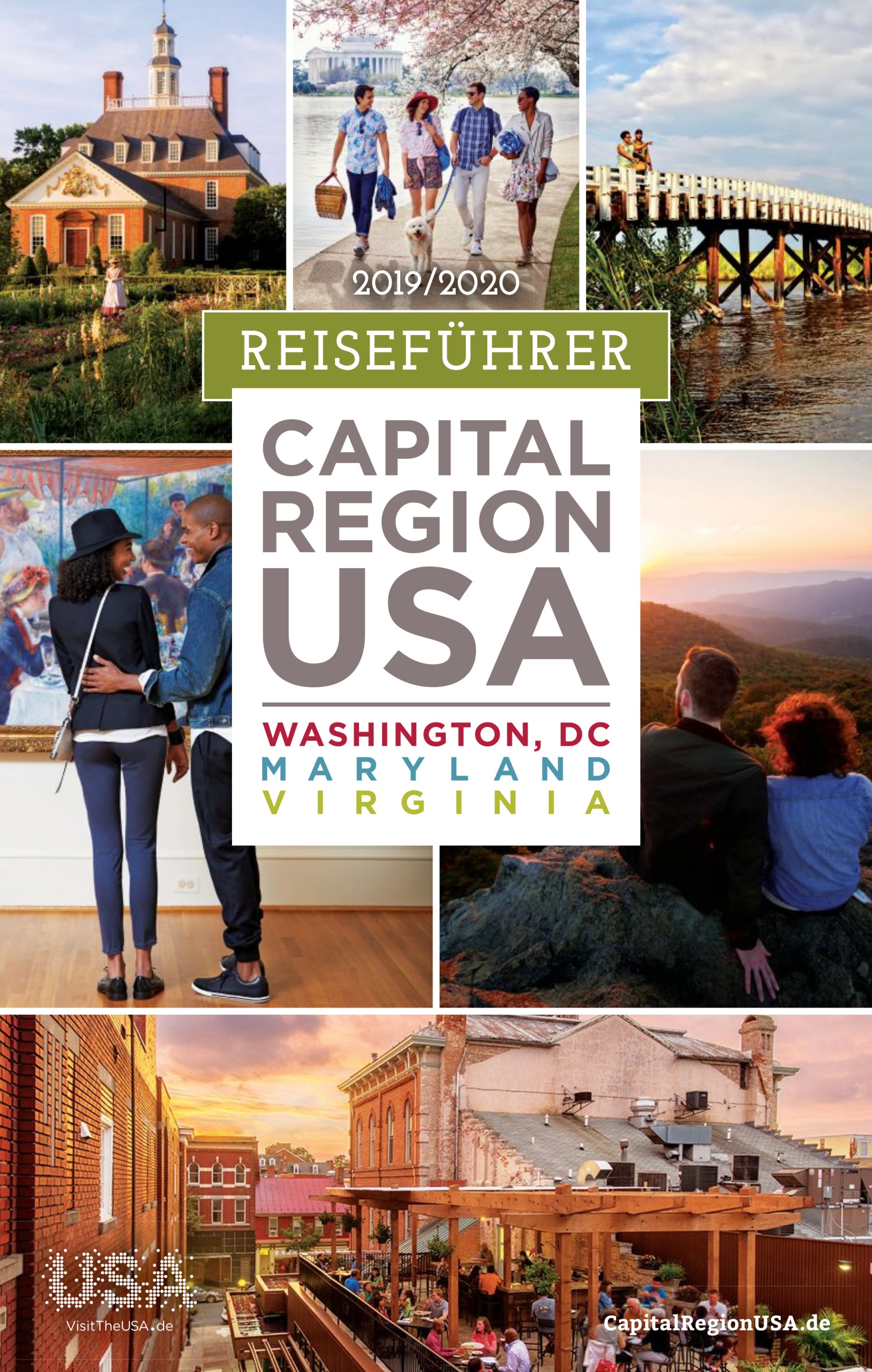 Im neuen deutschsprachigen Capital Region USA Reiseführer 2019/2020 können sich Urlauber auf 60 Seiten einen perfekten Überblick über die wichtigsten Attraktionen, Sehenswürdigkeiten und Hotspots in der amerikanischen Hauptstadt Washington, DC sowie den zwei angrenzenden Bundesstaaten Virginia und Maryland verschaffen.