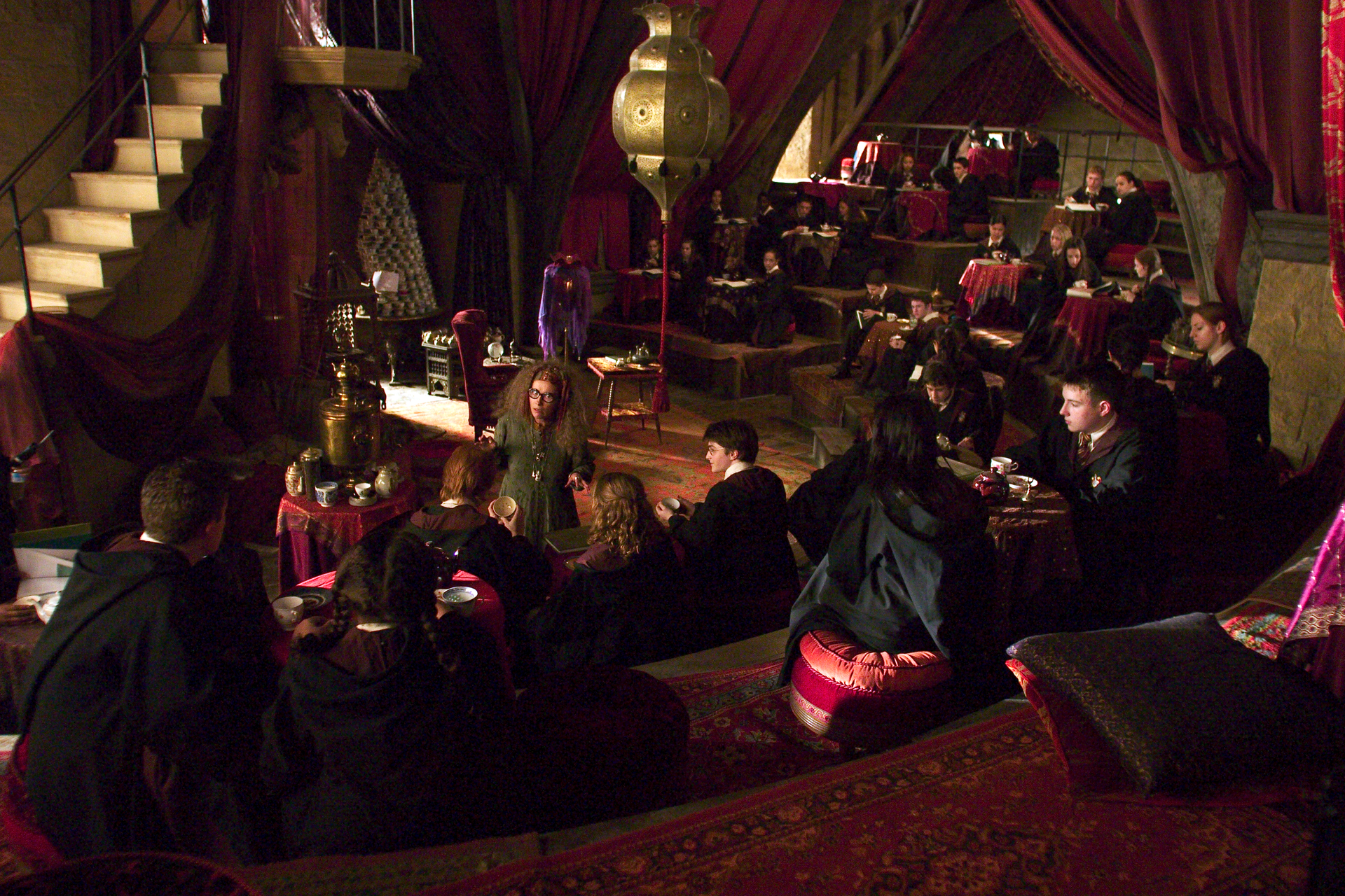 Zwei Jahrzehnte nach dem Kinostart von Harry Potter und der Gefangene von Azkaban im Jahr 2004 haben Besucher in der Warner Bros. Studio Tour London nun die Möglichkeit, im neuen Set Einblicke in die edle Kunst der Wahrsagerei zu erhalten. Professor Trelawneys Klassenzimmer kommt während Harrys drittem Schuljahr in Hogwarts zum ersten Mal im Film vor. Die jungen Zauberer lernen dort aus Teetassen und Kristallkugeln die Zukunft vorherzusagen. Geschulten Fan-Augen kommt das neue Set vielleicht bekannt vor: Während der Dreharbeiten überzogen die Filmemacher das Klassenzimmer für Verteidigung gegen die dunklen Künste üppig mit Stoff und verwandelten es in das Klassenzimmer für Wahrsagerei. Als Vorbild für die Gestaltung der Kulisse dienten traditionelle Teeläden, weshalb die Schüler paarweise an runden Tischen sitzen, umgeben von bunt zusammengewürfelten und aufgestapelten Teetassen. Zusätzlich wurde der Raum mit reichlich rotem Stoff ausgekleidet und mit juwelenfarbenen Samtpolstern, zahlreichen gemusterten Teppichen und arabischen Laternen dekoriert, um einen Unterrichtsraum zu schaffen, in dem sich die exzentrische Professor Trelawney wohlfühlen würde. Im neuen Set haben Fans nicht nur die Chance die von 500 alten Teetassen gesäumte Kulisse zu betrachten sondern auch die Originalkostüme der drei Hauptdarsteller und von Professor Trelawney. So auch Harry‘s Original-Tasse, in der Professor Trelawney den Grimm, ein Omen des Todes, entdeckt. Die Studio Tour ermöglicht es Besuchern, kreativ zu werden und die Formen der Teeblätter auch selbst zu deuten.