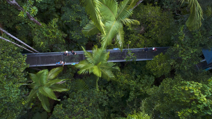 Die Tier- & Pflanzenwelt entdeckt man dabei auf einem 125 Meter langen Rainforest Skywalk sowie auf mehreren Rainforest Boardwalks – unter anderem auf dem „Bush Tucker Trail“ und im „Jurassic Forest“. Der „Cassowary Circuit“ wurde zuletzt erweitert und verläuft nun durch einen natürlichen Kasuar-Korridor. Zudem haben Gäste die Möglichkeit, vom 23 Meter hohen Canopy Tower über die Baumwipfel zu blicken. „Mit allen Sinnen den Regenwald erleben – und das auf mehreren Ebenen“, macht Abi Ralph Lust auf einen Besuch im Daintree Discovery Centre.